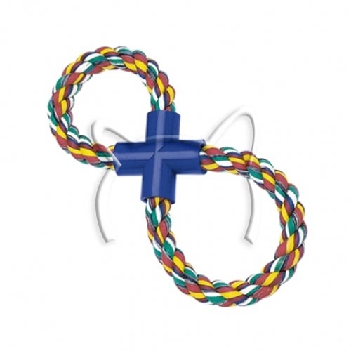 Разноцветна играчка от памучен шнур, във формата на осмица. Подходяща за игри с куче, което обича да дърпа със зъби и да се бори. За да може и вие да участвате в игрите на своя приятел. Размер: 35 см.
