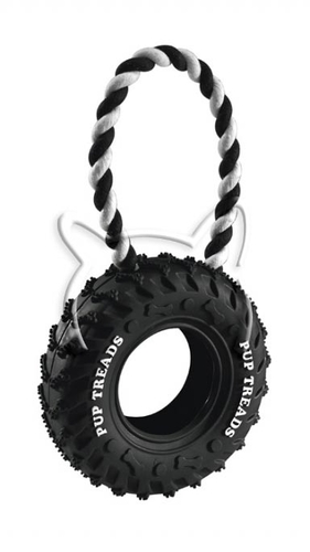 Голяма автомобилна гума с диаметър 15 см, закрепена към памучно въже, за което можете да я държите. Подходяща за игри с куче, което обича да дърпа със зъби и да се бори. Един добър начин да накарате кучето си да се забавлява и вие също да участвате в игрите на своя приятел. Размери: Диаметър: 15 см; Дължина: 29 см