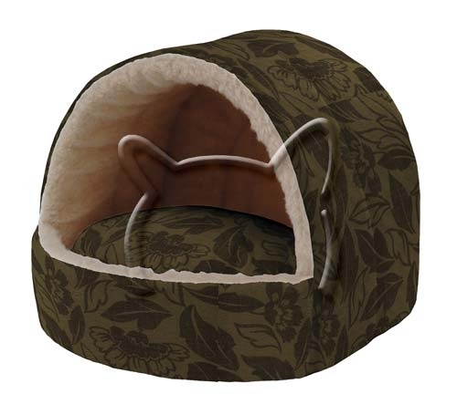 Къщичка от памучен плат и плюш Alveo F Medium mix color, Ferplast - тъмно зелено, 40х39х35 см.