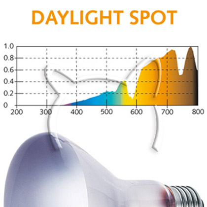 Топлинна лампа за пустинен или тропически терариум, която излъчва UV-A лъчи благоприятни за вашия домашен любимец. Неодимово покритие с цел филтриране честоти, които не могат да бъдат толерирани от някои тропически животни. Мощност 100W.