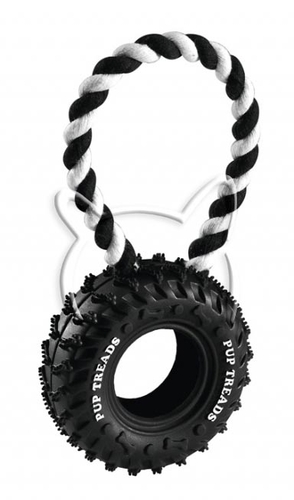 Малка автомобилна гума с диаметър 10,5 см, закрепена към памучно въже, за което можете да я държите. Подходяща за игри с куче, което обича да дърпа със зъби и да се бори. Един добър начин да накарате кучето си да се забавлява и вие също да участвате в игрите на своя приятел. Размери: Диаметър: 10,5 см; Дължина: 24 см