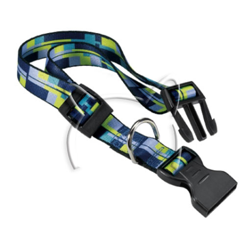 Класически нашийник за кучета с обиколка на врата 36-56 см. и ширина на нашийника 20 мм. Изработен е от найлонова материя със смесени цветове и пластмасова автоматична катарама.