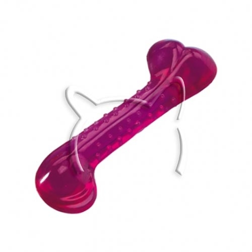 Оригинална цветна ирачка-кокал, ароматизирана, направена от полиуретан . Специфичният релеф е подходящо средство за профилактика на зъбния камък и масажира венците. Размер: 18.7 см.