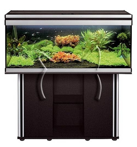 Черен аквариум AquaEl Alu Dekor 150. Аквариумът е подходящ за апартамент или къща, с модерния си дизайн се вписва идеално във дома Ви. Покрит е с алуминиево покритие и траен и елегантен капак, което допринася за лесния достъп до водата. Притежава отвор за хранене на рибите, както и отвори за външен филтър.
