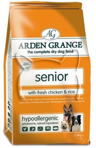 Специално разработена храна за кучета над 7 години от всички породи. Arden Grange Senior съдържа пилешко и ориз, задоволявайки потребностите на възрастните кучета. Храната осигурява точен баланс на протеини и въглехидрати. Основни мастни киселини Омега 3-6 се грижат за доброто здраве на козината и кожата. Антиоксиданти и витамини спомагат за по-добра имунна система. Здравината на ставите се подпомага от глюкозамин и хондроитин. Ниското съдържание на калории е съобразено с възрастта на кучето. Идеалното телесно тегло се поддържа от добавения L-Карнитин.
