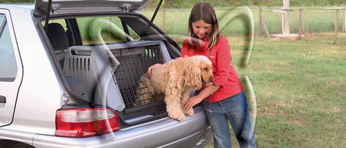Транспортна клетка от висококачествена пластмаса за лек автомобил тип комби или джип. Поставя се в багажника на колата. Клетката се разглобява и почиства много бързо. Размери: дължина - 72, широчина - 41, височина - 51см.