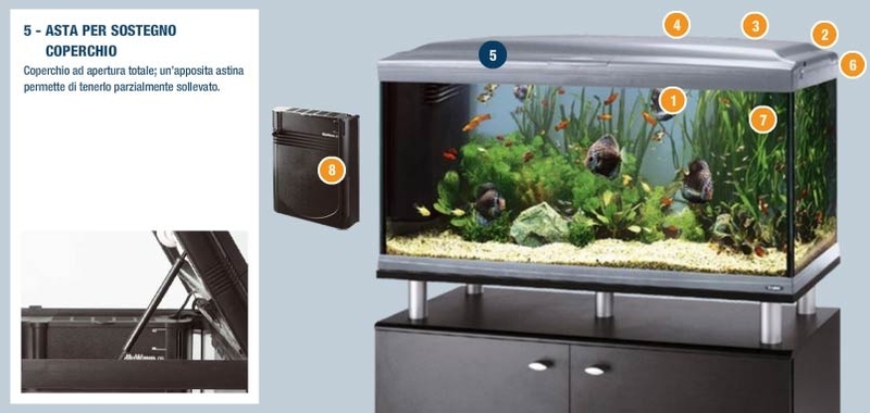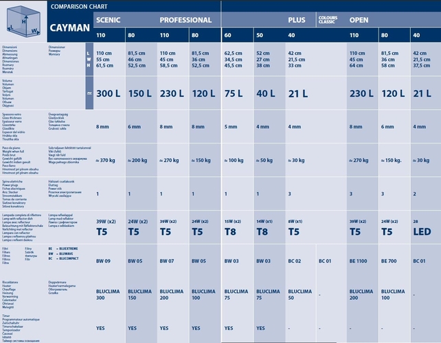 Cayman 80 Silver са стилни аквариуми със сребрист цвят на капака и рамката, в съчетание с модерен интериорен акцент, превръщат аквариумът Cayman 80 Silver в красива част от вашия дом. Комплектът аквариуми включват: аквариум 120 литра с дебелина на стъклото 8 мм, капак с вградена електронна система за осветеление, с която спестявате поне 30% електричество ( Phillips 2 х 18 W T8), интегриран вътрешен филтър за аквариуми Bluwave 05 за крастално чиста вода, снабден с филтриращи материали за механична, биологична и химическа филтрация на водата. Нагревателят за аквариуми BluClima 100W се грижи за температурата на водата с индикатор показващ кога водата се затопля. Освен това в оборудването е включена надеждна и безшумна помпа за аквариуми Blupower 350 l/h с ниска консумация на енергия. Масивна рамка допълва перфектно дизайна на аквариума и позволява да поставяте филтъра в разнообразни позиции. Аквариумът разполага с удобен люк за хранене на рибките и таймер за програмиране на осветлението. За повишаване на сигурността са предвидени бутони за отключване на капака. Бутон, прекъсващ захранването на помпата и нагревателя - позволява да изключите помпата и нагревателя от електрическата мрежа, докато почиствате и поддържате аквариума. Един контакт за включване на цялата апаратура. Тегло на аквариума в пълно състояние: 150 кг. Размери: 81.5/36/52.5 см. Две години гаранция.
