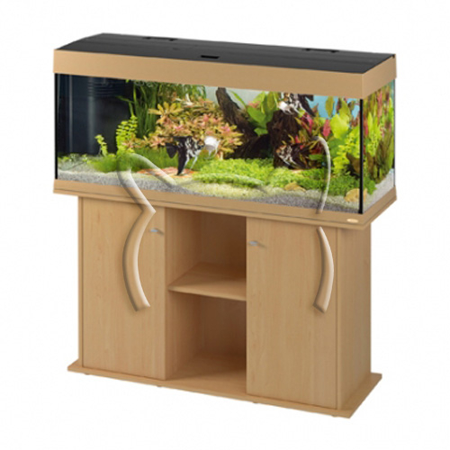 Dubai 120 Beech са напълно оборудвани висококачествени аквариуми. Комплектът аквариуми включват: аквариум 240 литра, капак с вградени лампи Т5 Freshlife 39 W,Toplife 39 W, интегриран вътрешен филтър за аквариуми Bluwave 07 за кристално чиста вода, снабден с филтриращи материали за механична, биологична и химическа филтрация на водата. Нагревателят за аквариуми BluClima 200W се грижи за температурата на водата с индикатор показващ кога водата се затопля. За него е предвидено отделение във филтърната кутия. Освен това в оборудването е включена надеждна и безшумна помпа за аквариуми Blupower 900 – 900 литра/час с ниска консумация на енергия, за която също е предвидено специално отделение вътре във филтърната кутия, както и таймер. Размери: 121/41/56 см.