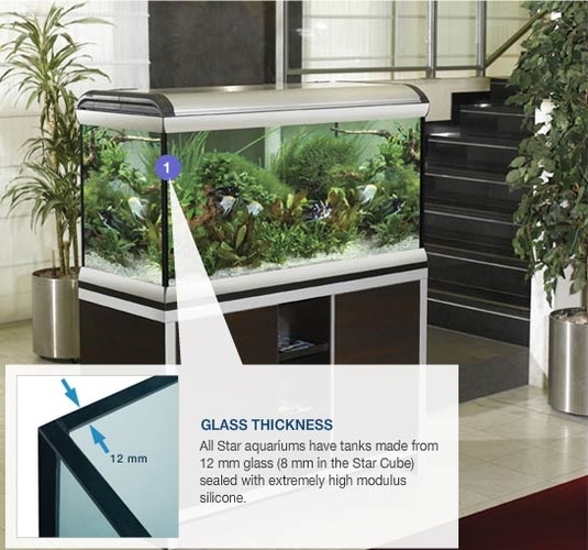 Ferplast Star 160 са аквариуми от най-висок клас, с изключително стилен дизайн и изискан вид, в съчетание с модерен интериорен акцент, превръщат аквариумът Star 160 в уникално красива част от вашия дом. Комплектът аквариуми включват: аквариум 570 литра с дебелина на стъклото 12 мм, капак с вградена електронна система за осветеление, с която спестявате поне 30% електричество, външен филтър за аквариуми Bluextreme 1500 за крастално чиста вода, снабден с филтриращи материали за механична, биологична и химическа филтрация на водата. Нагревателят за аквариуми BluClima 300W се грижи за температурата на водата с индикатор показващ кога водата се затопля (2 x BluClima 300W с терморегулатор). Аквариумът разполага с напълно отварящ се капак с висококачествени хидравлични устройства, които го задържат отворен, докато Вие обслужвате аквариума. Освен това капакът е снабден с отварящ се преден панел за хранене на рибките и поддържане на техния дом. Един контакт за включване на цялата апаратура. Тегло на аквариума в пълно състояние: 700 кг. Размери: 162/62/67.5 см. Две години гаранция.