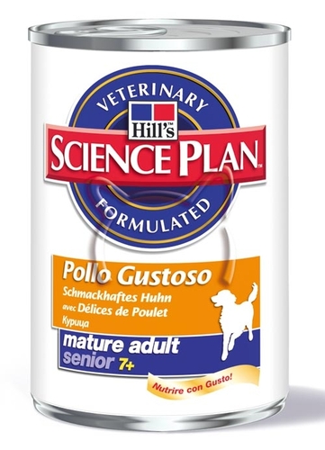 Hill's Mature Senior7+ Savoury Chicken е храна за малки/средни породи в напреднала възраст над 7 години от чисто пилешко месо. Тя допринася за доброто здраве на кучето и се грижи за неговото тегло. Излишните количества се избягват, за да не доведе до заболявания. Поддържа кожата и козината, подпомага ставите и тяхната подвижност. Благодарение на антиоксиданти и таурин се поддържа здравето на сърцето, намалява свободните радикали и укрепва имунната система.