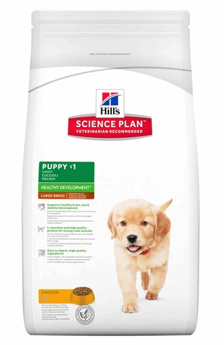 Храната Hill's Puppy Large Breed with Chicken е предназначена за кучета от едри породи от 2 месеца до 1 година. Спомага за оптималния растеж на костите. Поддържа растежа и развитието, укрепва мускулната тъкан със съдържанието на повече протеини. L-карнитинът спомага за развитие на повече мускули и по-здрави кости. Омега-3 мастната киселина спомага за оптимално развитие на ретината, подобрява зрението и допринася за развитието на мозъка като улеснява тренирането на кученцето. Поддържа кожата и козината здрави. Стимулира растежа и укрепва имунната система.