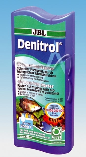 JBL Denitrol представлява съвременен бактериален активатор, който биологично премахва нитратите. Детоксира водата с формула за бързо активиране чрез високоефективни пречистващи бактерии и ензими. Притежава 8 допълнителни бактериални култури за разпадане на протеини, амоняк и нитрити. В новостартиран акваривум се препоръчва рибите да се въведат от 24 до 48 часа след третиране с JBL Denitrol.