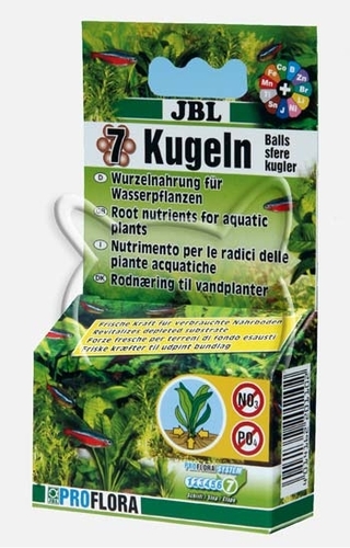 JBL Kugeln Balls 7 е тор под формата на топки. JBL Kugeln Balls е за дълготрайно подхранване на корените в работещи аквариуми. Съдържа желязо и основни минерали и микроелементи, в леснодостъпна и усвояема за растенията форма. Не съдържа фосфати и нитрати, предизвикващи образуването на вредни водорасли. Един път годишно в зоната на корените се пускат едно или няколко топчета в зависимост от големината на растенията.