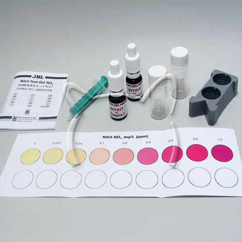 JBL Nitriti Test Set - NO2 е тест за измерване нивото на нитрити във водата. Подходящ е за сладководни и морски аквариуми. Препоръчителни нива в аквариум: 0,1 mg/l нитрити за сладководен аквариум - ако стойността се качи над 0,2 mg/l - балансът в аквариума е нарушен.