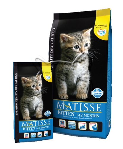 Matisse Kitten представлява пълноценна и балансирана храна предназначена за котенца до 12 месечна възраст, както и за бременни и кърмещи котки. Matisse Kitten съдържа само най-добрите съставки, необходими за здравословният и балансиран растеж: Пилешкото месо, Яйцата, Рибата и Оризът гарантират правилното количество лесно смилаеми калории и протеини. Matisse Kitten е силно апетитна храна и съдържа оптимално количество таурин, основни протеини, балансирано съотношение на Омега-3 и Омега-6 мастни киселини, както и витамини и минерали, необходими за правилната и балансирана диета. Matisse Kitten не съдържа генетично модифицирани компоненти.