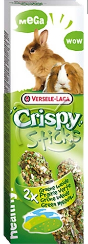 Mega Sticks Rabbits-Guinea Pigs Green Meadow са крекери за зайци и морски свинчета с вкус на зелена ливада. 2 бр крекери, всеки по 70 гр. Обогатени са с витамини, аминокиселини и минерали. Zoomagazin ZooMall препоръчва тези продукти.
