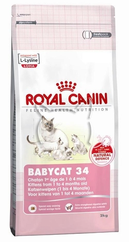 Royal Canin Baby Cat е висококачествена храна за котета от 1 до 4 месеца. Това е първият етап на растежа на едно котенце, преходът от мляко към твърда храна (отбиване). Млечните зъби се появяват между 2-3 седмици и 2 месеца, имунитетът придобит от майката намалява, а собствената имунна защита все още е слаба. Рехидратирането на гранулите спомага за прехода от мляко към твърда храна.