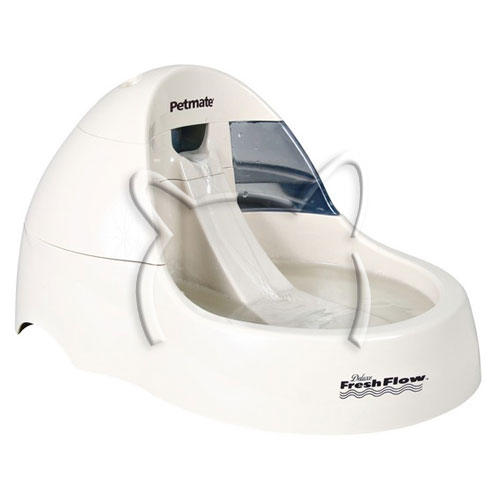Fresh Flow Deluxe Automatic Water Dispenser е пластмасова автоматична поилка за котки или малки кученца. Циркулацията спомага за поддръжката на винаги прясна вода. Това намалява неприятната миризма и вкус на застояла вода. Водата е обогатена на кислород. Филтър с активен въглен спомага за пречистването.