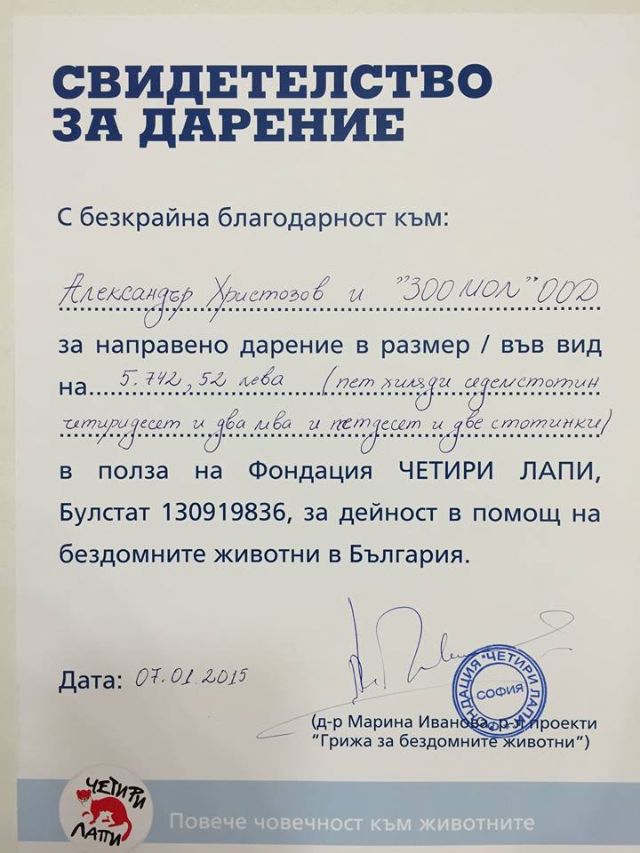 За изминалата година ние от зоомагазин ZooMall дарихме 5742.52 лв.